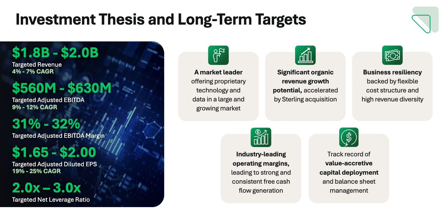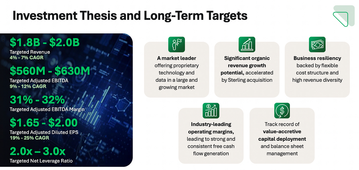 First Advantage is a tactical trade on a labor market inflection with valuation support. The stock is -33% over the past month and -47% from its 52-week high on soft hiring volumes, tariff-driven policy uncertainty, and nonsensical AI fears. FA currently trades at 8x FY26 EV/EBITDA and a 6% unlevered FCF yield. Stabilization in hiring volumes is sufficient to re-rate the stock, and a strong fiscal backdrop makes recession risk highly unlikely with a potential for reacceleration that could drive FA back to $20 per share or 90% upside from its current price in a bull case scenario. $15 is my base case with an implied 43% upside from today’s price of $10.50.