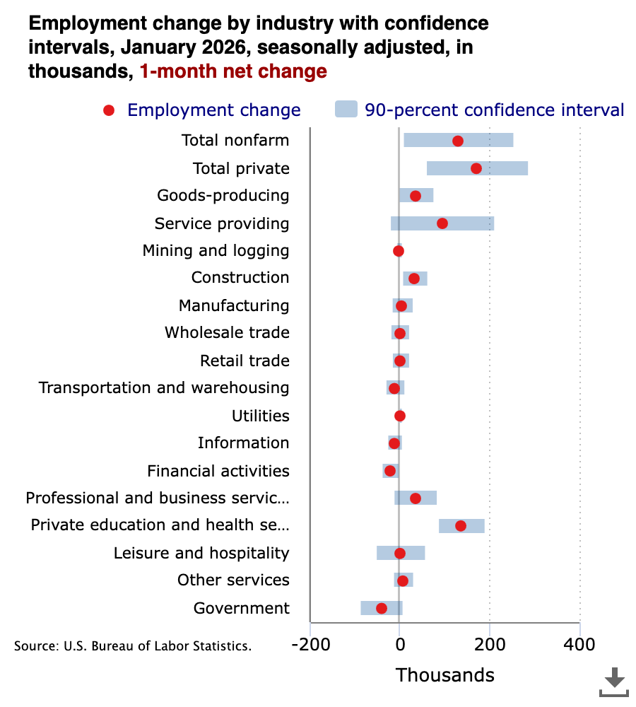 The labor market is undeniably soft, but macro is filled with noise especially given the noisiest administration of all-time creating a new policy shock every other week. Nonetheless, initial jobless claims remain contained. The recent spike was largely attributed to severe winter storms, not structural deterioration and there’s no evidence of widespread layoffs despite clickbait headlines about AI destroying white collar work. The OBBBA is pumping a massive amount of fiscal into the economy ahead of midterms which should be supportive for hiring.